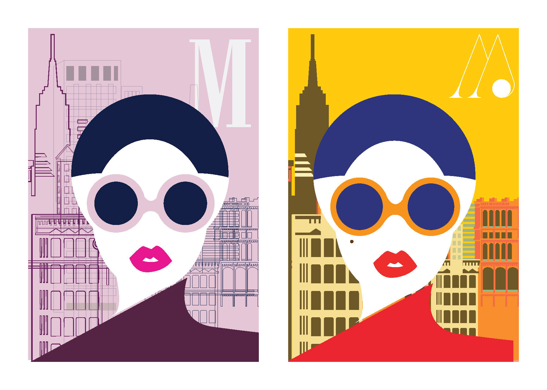 Poster design, digital illustration, and various options for color combinations.