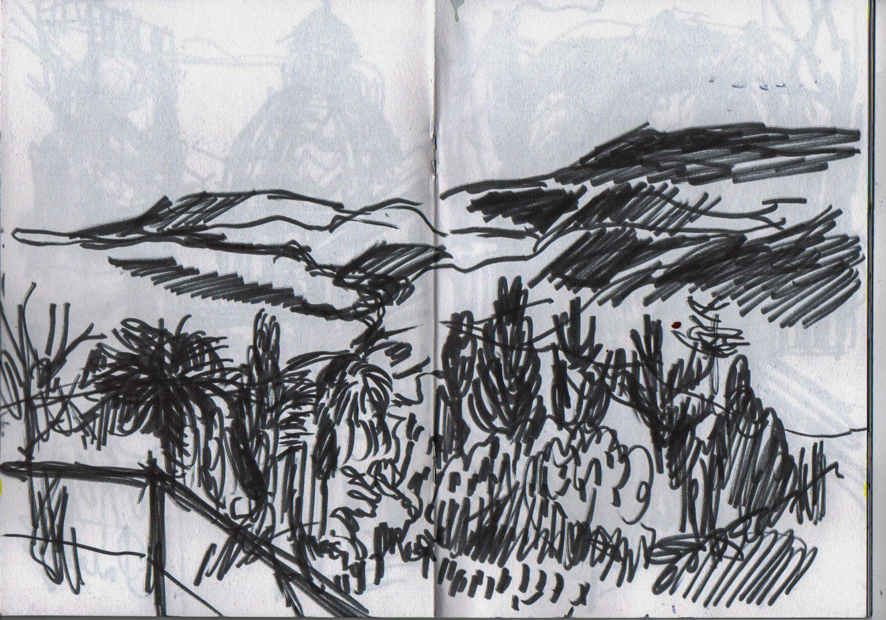 For a year, I have been conducting visual research into new ways of depicting landscapes. I initially began with photographic material and later came up with the idea to represent landscapes from my imagination. Gradually, I sought to distance myself from traditional landscape imagery and explore new directions based on my own vision. A significant part of this research also involves experimenting with techniques and observing how the materials interact with the paper, resulting in fluidity on paper and unexpected outcomes.